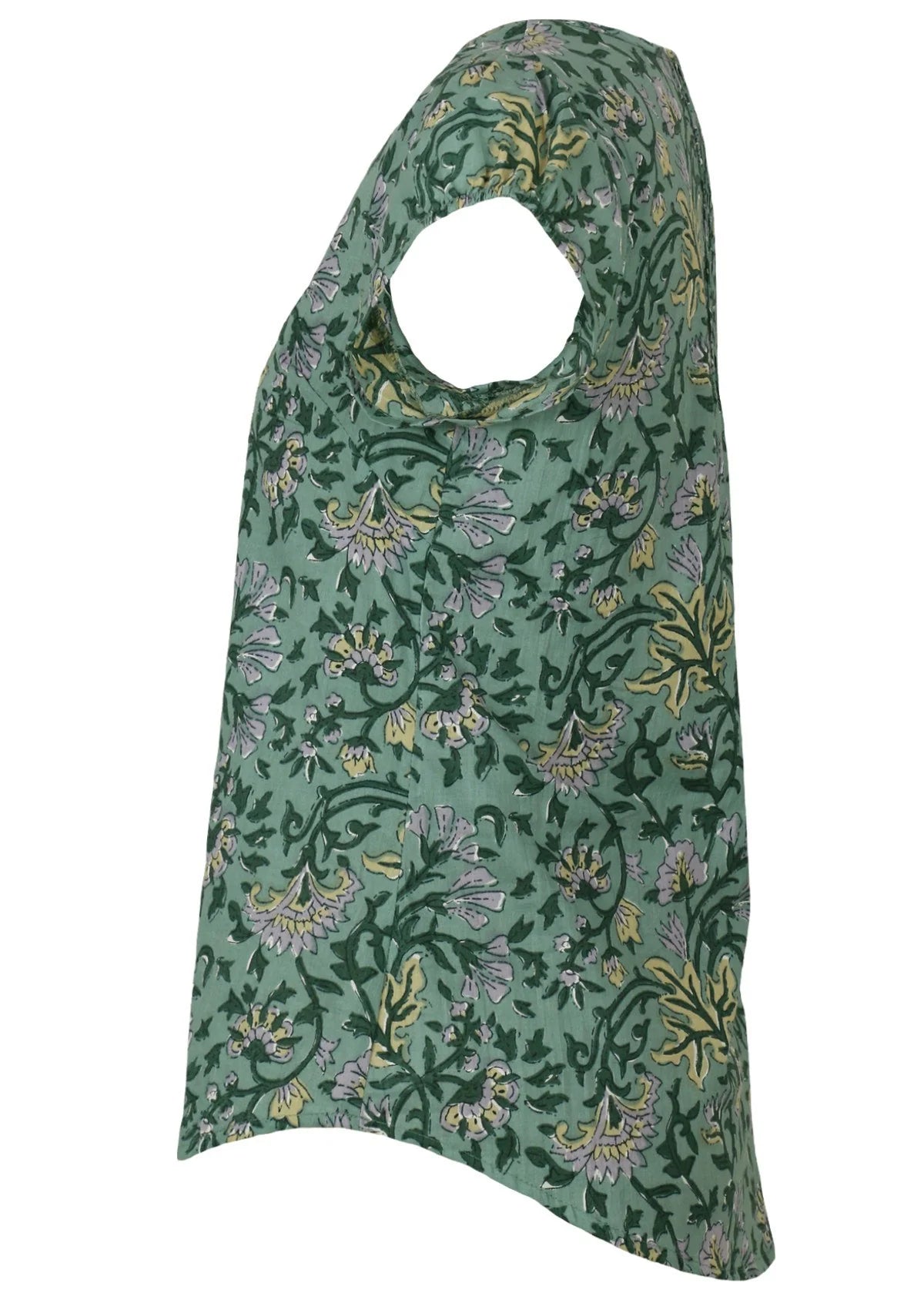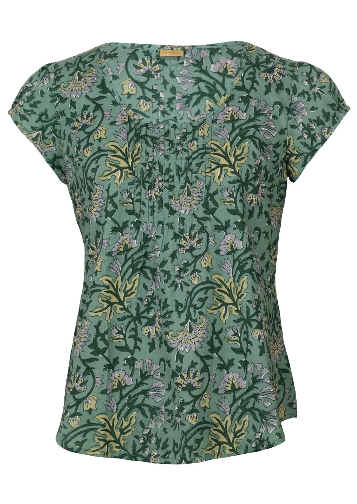 The Tulsi Top in Sage is a sweet cap sleeve top made from 100% cotton, featuring a soft green Indian floral print. With a flattering U-shaped neckline highlighted by delicate...